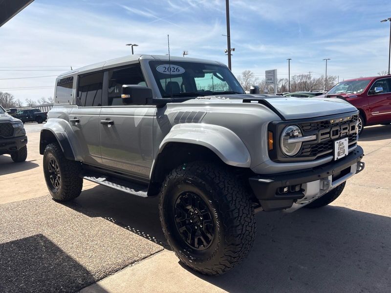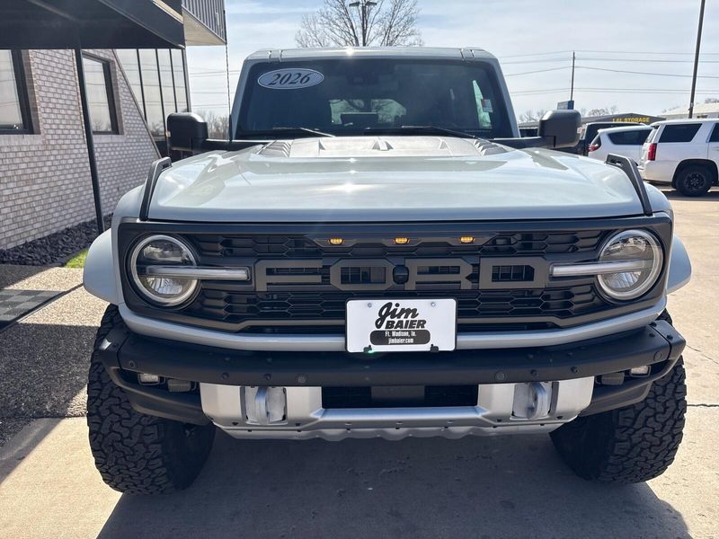 Contact Jim Baier Inc today for information on dozens of vehicles like this 2026 Ford Bronco Raptor. This Ford includes: EQUIPMENT GROUP 374A LUX PACKAGE TRANSMISSION: 10-SPEED AUTOMATIC Transmission w/Dual Shift Mode A/T 10-Speed A/T FRONT LICENSE PLATE BRACKET PAINTED HARD TOP Rear Defrost Convertible Hardtop *Note - For third party subscriptions or services, please contact the dealer for more information.* Want more room? Want more style? This Ford Bronco Raptor is the vehicle for you. Pull up in the vehicle and the valet will want to parked on the front row. This Ford Bronco Raptor is the vehicle others dream to own. Don't miss your chance to make it your new ride. This 4WD-equipped vehicle handles any condition on- or off-road with the sure footedness of a mountain goat. With unequaled traction and stability, you'll drive with confidence in any weather with this Avalanche Gray 2026 4WD Ford Bronco Raptor.