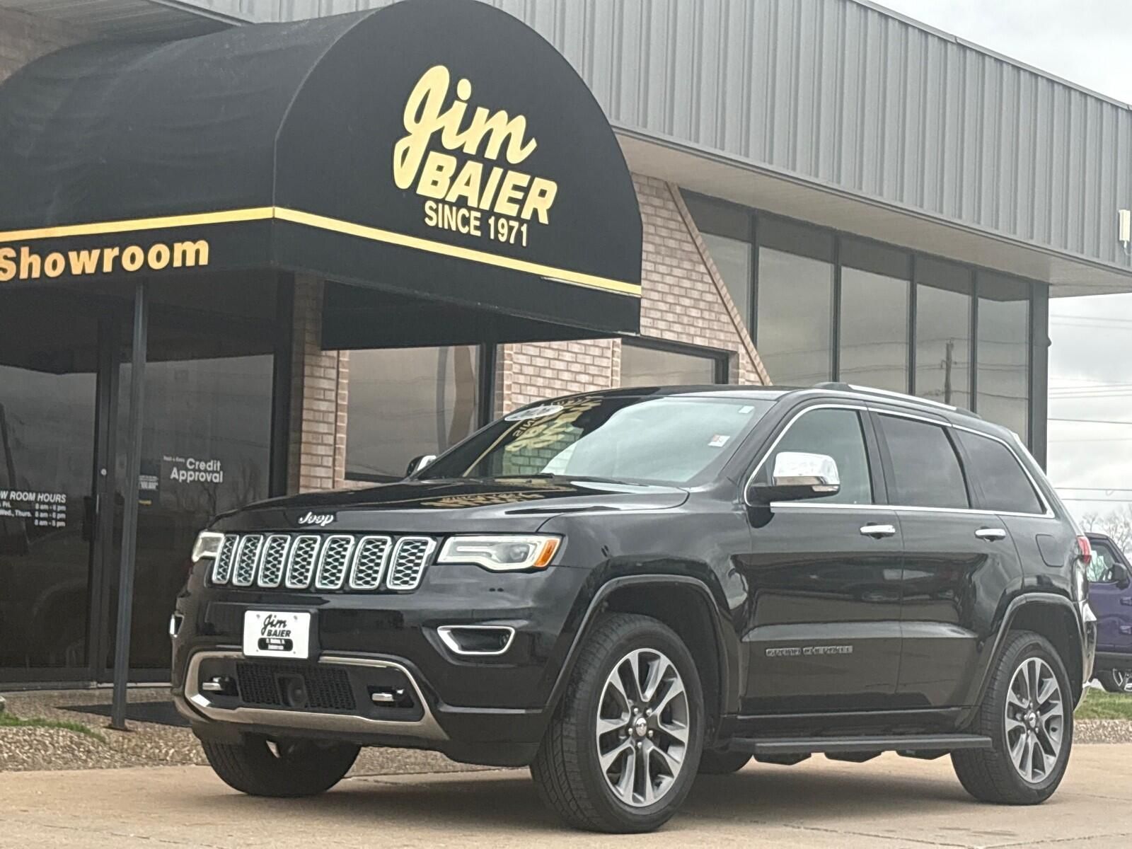 This 2018 Jeep Grand Cherokee Overland 4x4 delivers luxury, capability, and strong everyday performance. Powered by the 3.6L V6 paired with an 8-speed automatic transmission, it offers a smooth ride while the Quadra-Trac II 4WD system and Quadra-Lift air suspension give it excellent capability in all conditions. Finished in Diamond Black Crystal Pearl with a premium black leather interior, this Overland features a dual-pane panoramic sunroof, 20-inch aluminum wheels, LED fog lamps, and a power liftgate. Inside, youll find heated and ventilated front seats, heated rear seats, a heated steering wheel, wood and leather trim, and an 8.4-inch touchscreen with navigation, Apple CarPlay, and Android Auto. Safety features include adaptive cruise control, blind spot monitoring, lane departure warning, forward collision warning with advanced brake assist, park assist, and a rear backup camera. If youre looking for a comfortable and capable SUV with luxury features and true 4x4 capability, this Grand Cherokee Overland is a great choice. Comes with our lifetime engine warranty up to $4,000 if you get your oil changes done here and get the BG additive applied every visit! You're not just a number here at Jim Baier, our #1 priority is taking care of you before, during, and after the sale! We strive to build a lasting relationship with our customers and service their transportation needs for life! And that's what has given us the privilege of being named the #1 rated dealer in Southeast Iowa. Come experience the difference! Call/text (319) 371-4268, or email us at JESSE@jimbaier.com before you stop in to make sure this vehicle is still available and we'll have it pulled up front when you arrive!