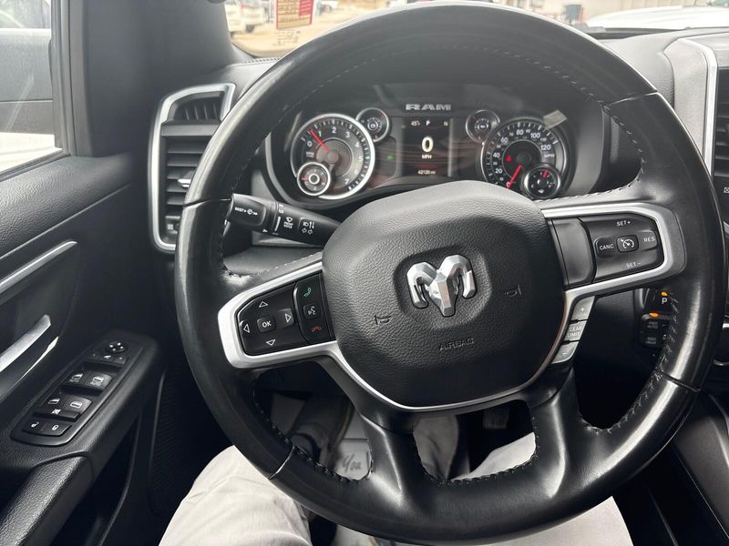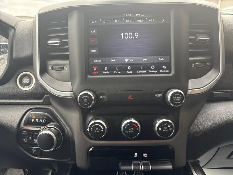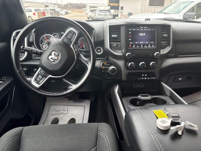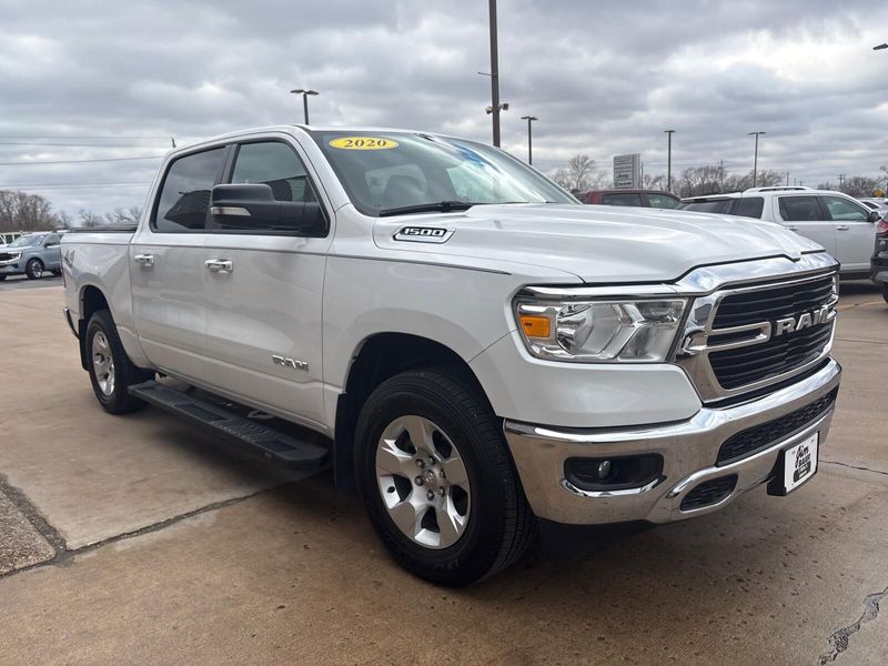 1 Owner, local trade, perfect Carfax!! This 2020 Ram 1500 Big Horn Crew Cab 4x4 offers strong capability with everyday comfort. Its powered by the 3.6L V6 eTorque engine paired with an 8-speed automatic transmission, delivering smooth performance and solid efficiency. With 4x4 capability, a Class IV receiver hitch, 3.55 rear axle ratio, and anti-spin differential, its ready for towing and tough conditions. Finished in Bright White with a Black interior, this truck features 18-inch wheels, fog lamps, heated power mirrors, and a locking tailgate. Inside, youll find deluxe cloth bucket seats, an 8-way power driver seat with lumbar support, power adjustable pedals, rear in-floor storage bins, and a rear power sliding window. The Big Horn Level 1 package upgrades you to an 8.4-inch touchscreen with Apple CarPlay and Android Auto, Bluetooth connectivity, SiriusXM capability, and a color driver display. Safety and convenience features include push-button start, remote keyless entry, a rear backup camera, electronic stability control, trailer sway damping, and hill start assist. If youre looking for a sharp, well-equipped full-size truck with 4x4 capability and modern tech, this Ram 1500 Big Horn is a great choice. Comes with our lifetime engine warranty up to $4,000 if you get your oil changes done here and get the BG additive applied every visit! You're not just a number here at Jim Baier, our #1 priority is taking care of you before, during, and after the sale! We strive to build a lasting relationship with our customers and service their transportation needs for life! And that's what has given us the privilege of being named the #1 rated dealer in Southeast Iowa. Come experience the difference! Call/text (319) 371-4268, or email us at JESSE@jimbaier.com before you stop in to make sure this vehicle is still available and we'll have it pulled up front when you arrive!