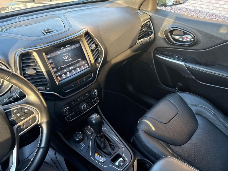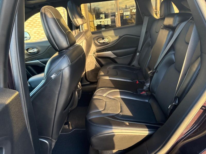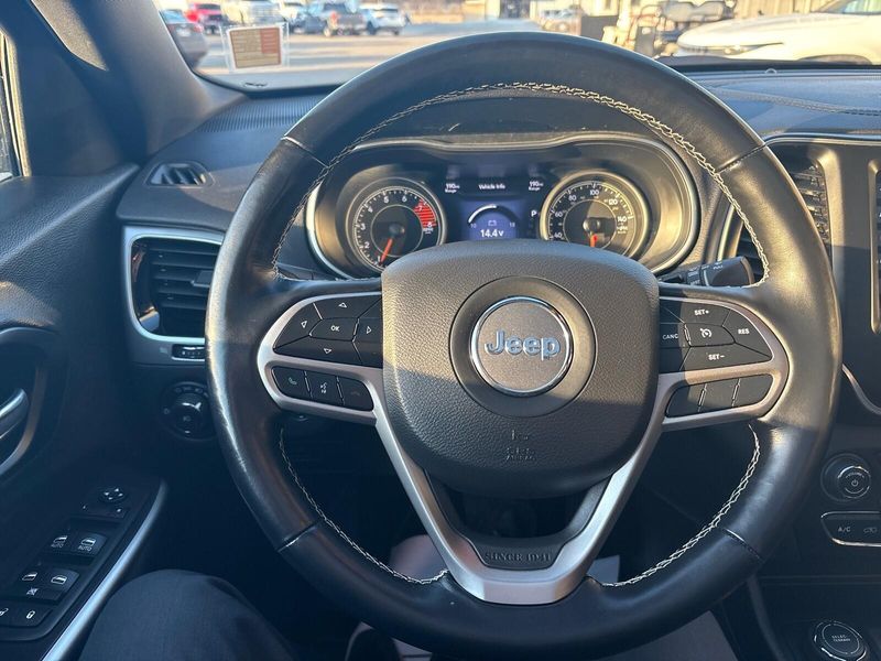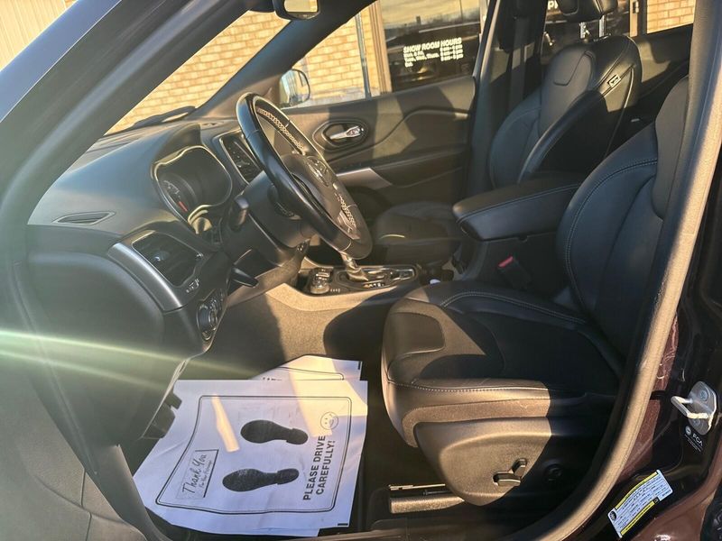 This 2021 Jeep Cherokee Latitude Lux 4X4 is a one-owner local trade with a perfect Carfax history and a great mix of comfort, capability, and style. Powered by the strong 3.2L V6 paired with a 9-speed automatic transmission, it delivers confident performance along with Jeeps Active Drive 4x4 and Selec-Terrain system for year-round traction. Finished in eye-catching Sangria Metallic, this Cherokee stands out with 19-inch wheels, Granite Crystal exterior accents, and the sought-after dual-pane panoramic sunroof. Inside, the Latitude Lux trim adds leather-trimmed bucket seats, heated front seats, a heated steering wheel, power front seats, dual-zone climate control, remote start, and the large 8.4-inch touchscreen with Uconnect. Safety and convenience features buyers care about include blind-spot monitoring, rear cross-traffic alert, forward collision warning with automatic braking, lane departure warning, rear park assist, and a backup camera. The power liftgate and trailer tow package add extra practicality for daily driving or weekend plans. Clean, well-equipped, and hard to find in this condition, this Cherokee is a solid choice for anyone wanting a comfortable midsize SUV with true 4x4 capability. Comes with our lifetime engine warranty up to $4,000 if you get your oil changes done here and get the BG additive applied every visit! You're not just a number here at Jim Baier, our #1 priority is taking care of you before, during, and after the sale! We strive to build a lasting relationship with our customers and service their transportation needs for life! And that's what has given us the privilege of being named the #1 rated dealer in Southeast Iowa. Come experience the difference! Call/text (319) 371-4268, or email us at JESSE@jimbaier.com before you stop in to make sure this vehicle is still available and we'll have it pulled up front when you arrive!