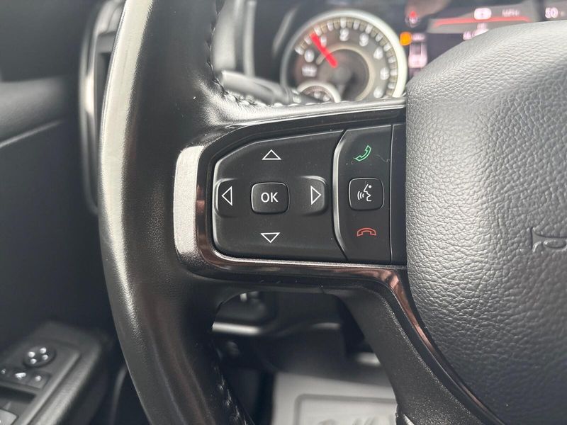 This 2022 Ram 1500 Big Horn is a one-owner truck with a perfect Carfax and a great combination of power, capability, and comfort. Under the hood is the legendary 5.7L HEMI V8 with eTorque, paired to a smooth 8-speed automatic transmission, delivering strong performance while still improving efficiency with stop/start technology. The raised ride height, electronic locking rear axle, Hill Descent Control, and multiple underbody skid plates give this truck added confidence on rough roads, job sites, or off the pavement. Inside, the Big Horn Level 2 package brings in all the features buyers ask for. Youll enjoy the 8.4-inch touchscreen with Uconnect 5, Apple CarPlay and Android Auto, heated front seats, heated steering wheel, remote start, power-adjustable pedals, and an 8-way power driver seat with lumbar support. The premium cloth and vinyl bucket seats, rear in-floor storage bins, and rear power sliding window make it both comfortable and practical for daily use. The Built-to-Serve Edition adds aggressive style and extra utility with 20-inch aluminum wheels, black tubular side steps, tow hooks, and unique black exterior accents. Towing is well covered thanks to the Class IV receiver hitch, 7-pin wiring harness, trailer sway control, and ParkSense front and rear park assist, making this Ram just as ready for trailers as it is for commuting. Finished in Diamond Black Crystal Pearl-Coat, this Ram 1500 Big Horn has the look, power, and features that make it one of the most popular full-size trucks on the road. Comes with our lifetime engine warranty up to $4,000 if you get your oil changes done here and get the BG additive applied every visit! You're not just a number here at Jim Baier, our #1 priority is taking care of you before, during, and after the sale! We strive to build a lasting relationship with our customers and service their transportation needs for life! And that's what has given us the privilege of being named the #1 rated dealer in Southeast Iowa. Come experience the difference! Call/text (319) 371-4268, or email us at JESSE@jimbaier.com before you stop in to make sure this vehicle is still available and we'll have it pulled up front when you arrive!